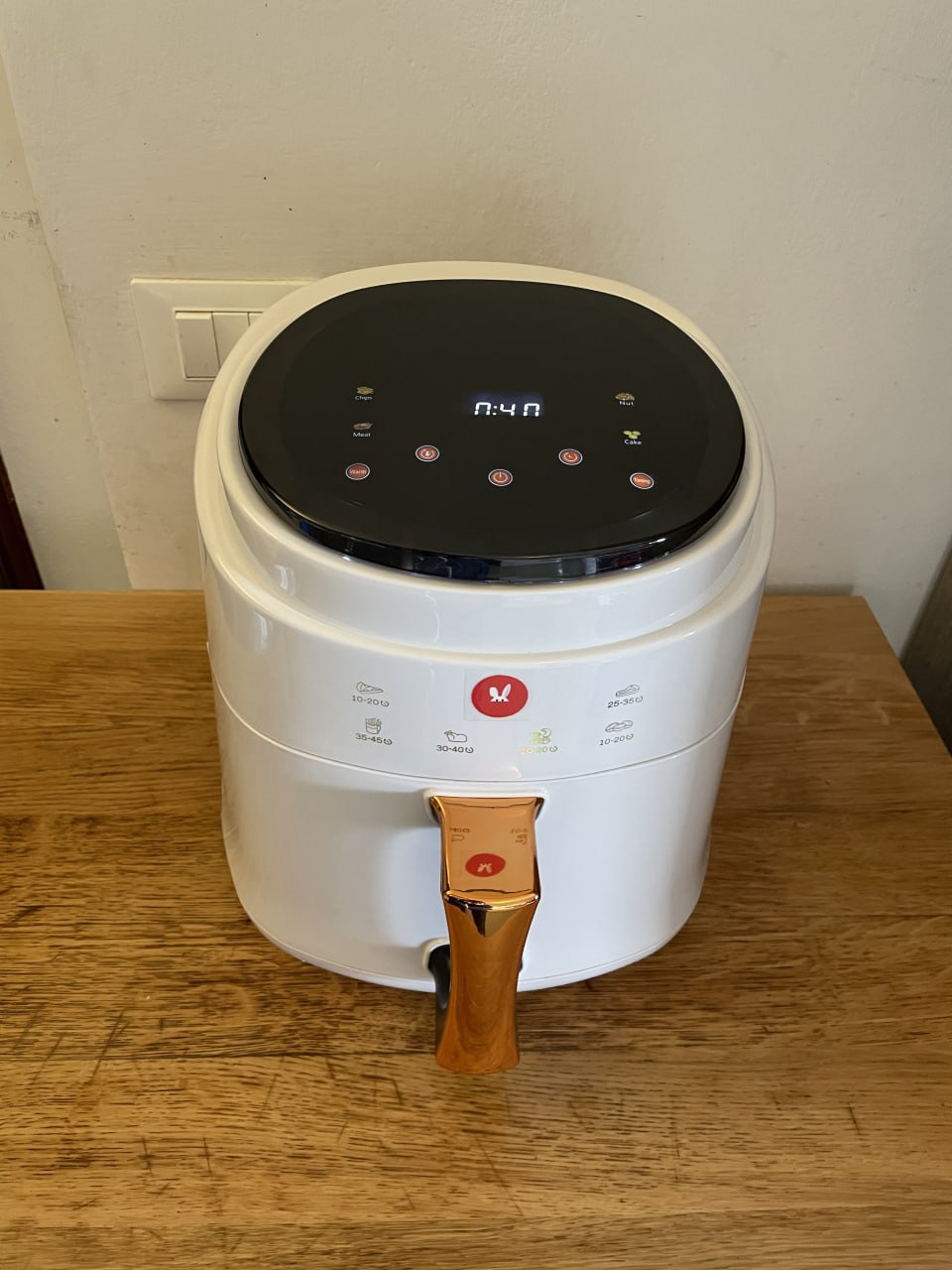 Il design compatto e moderno, di colore bianco elegante, si integra facilmente in qualsiasi cucina, ottimizzando lo spazio senza rinunciare alla funzionalità. La friggitrice è dotata di materiali resistenti e facili da pulire, come il cestello antiaderente removibile, che rende la manutenzione semplice e veloce.